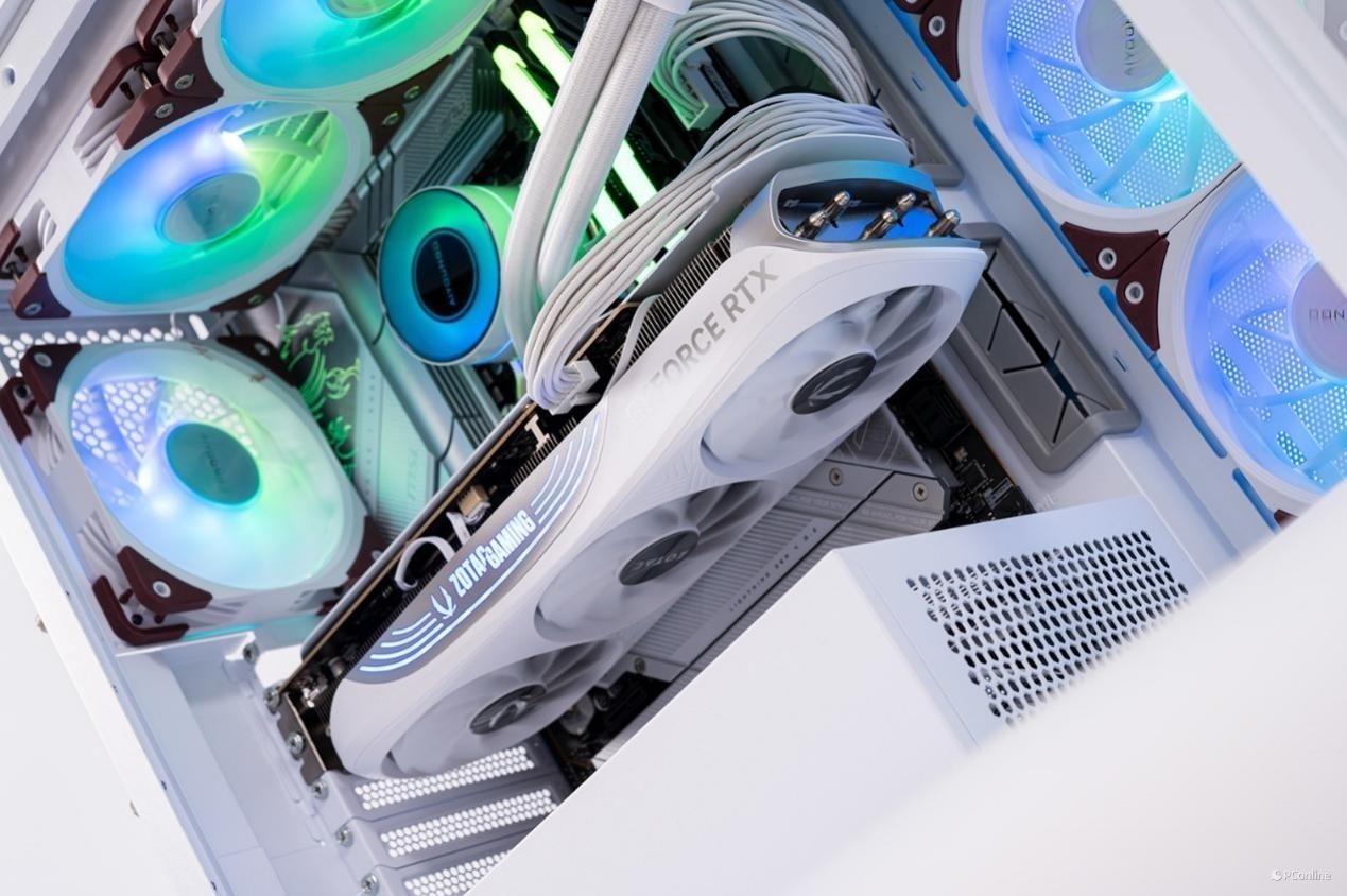索泰RTX 4080 SUPER TRINITY OC月白不仅有清新、优雅的外观,一身白色更显惊艳,尤为出众,配合闪耀的RGB灯效,显卡的颜值来到了新的高度,真的非常适合白色主题装机。