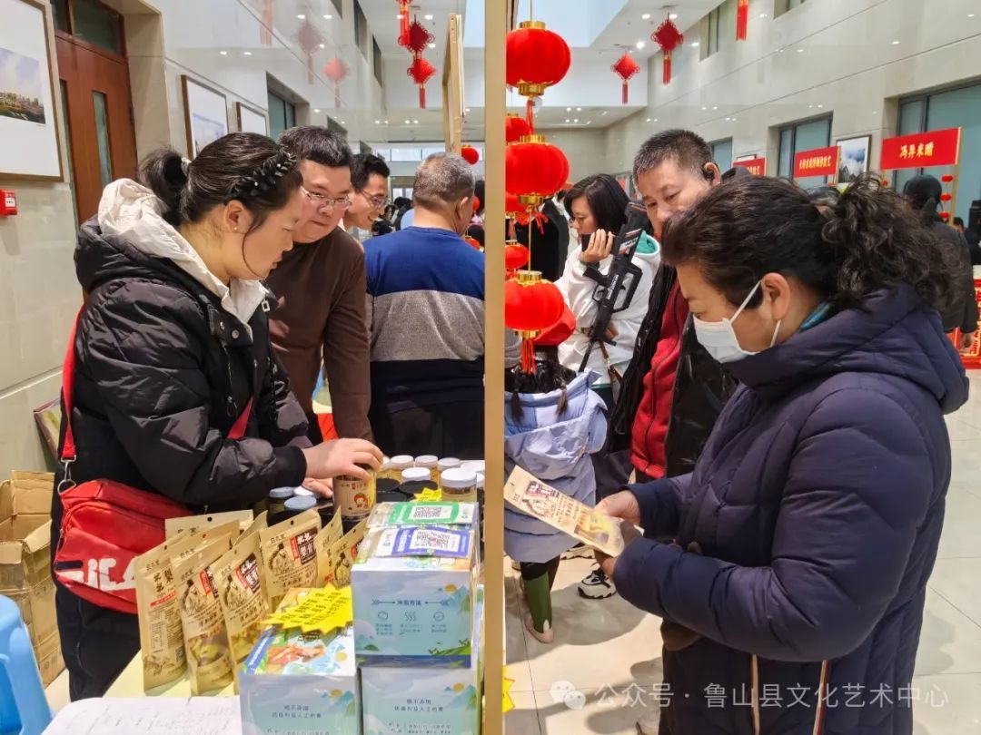 在“非遗传情”2024平顶山非遗年货节的集市上,我县精心组织的空心面、传统糕点、槲叶粽、麦秆画、藤编、马九烧鸡、绵枣、牛氏醋焖鸡、德秀野生葡萄酒、梨膏糖等数十家非遗项目特色产品更是吸引了众多目光。我们的产品刚摆上桌,展位前就挤满了人,鲁山特色非遗集中亮相,可谓是有米有面又有肉还有葡萄酒,餐前绵枣配果子,餐后来颗梨膏糖清清嗓,另有艾灸沉浸式体验,更有赏心悦目的麦秆画,吸引了众多平顶山市民争相品尝购买 。