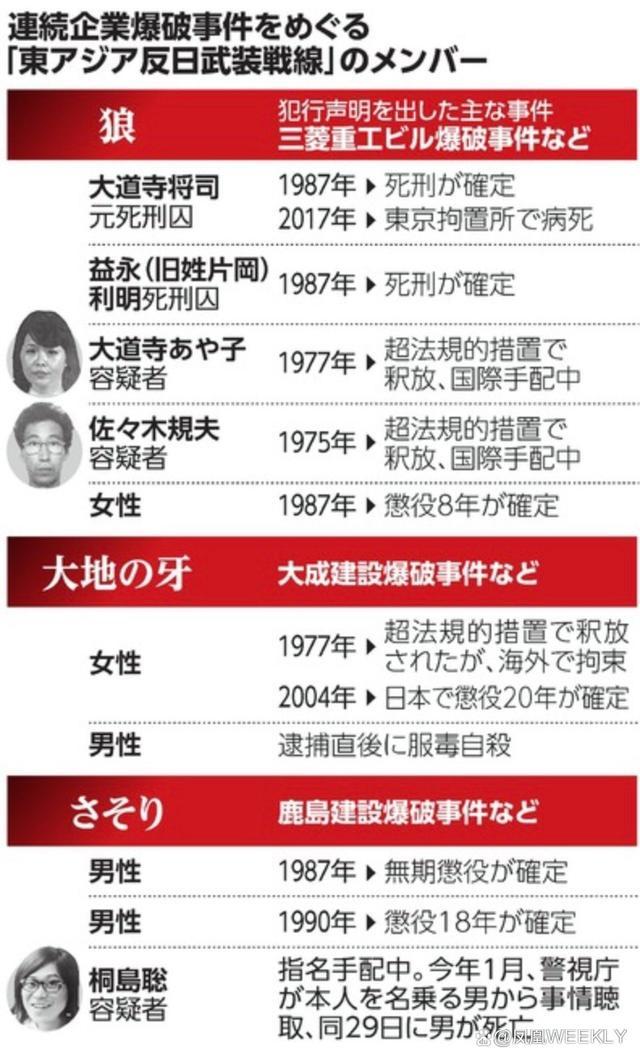 与连环企业爆炸案有关的“东亚反日武装战线”成员。图表来源:日本《朝日新闻》