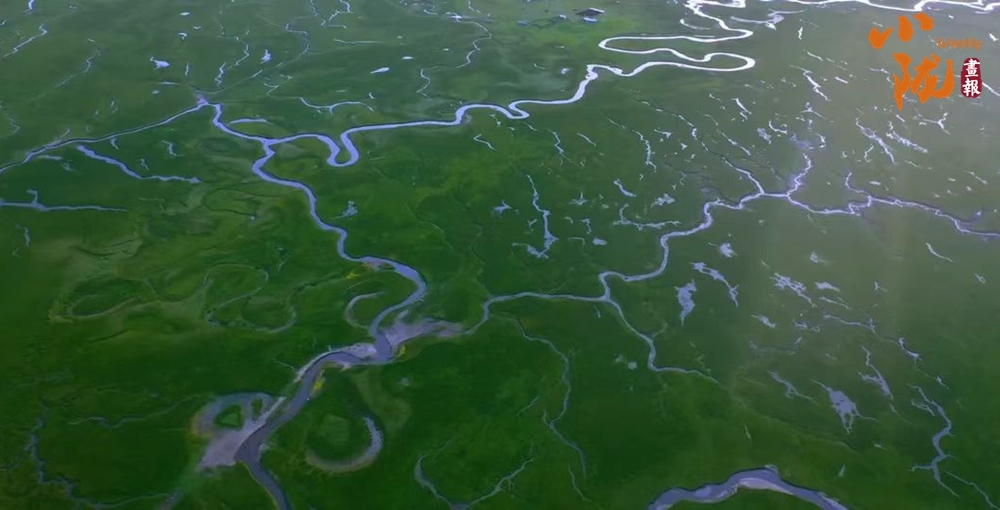 条条溪流蜿蜒纵横,湿地沼泽星罗棋布,有牛羊信步,俊鹰翱翔,蓝天白云绿地,宽广辽阔,一望无际。