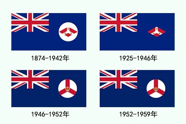 ▲新加坡及海峡殖民地的历代旗帜,英属色彩十分明显