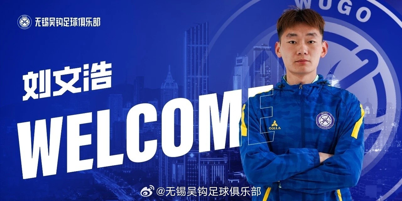 经与本人协商一致,即日起球员刘文浩正式加盟无锡吴钩足球俱乐部。2024赛季,他将会身披16号战袍,为无锡而战!