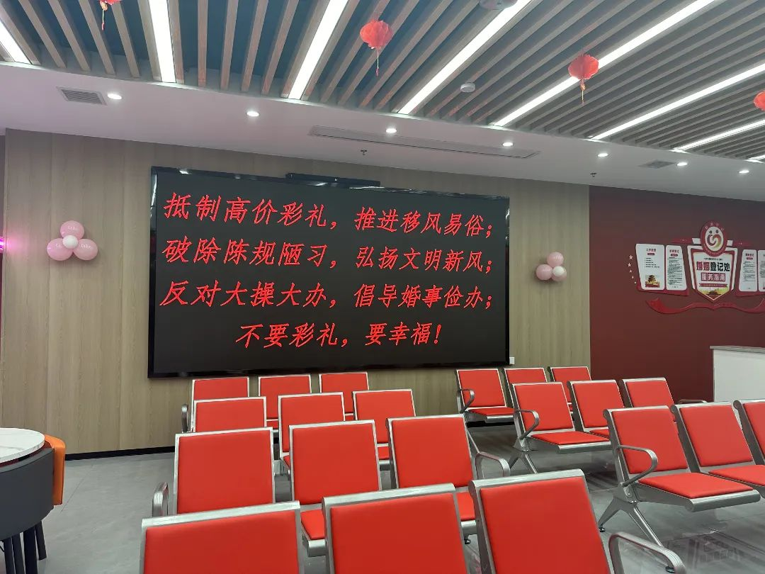 就算坐在民政局内排队等候时,也无法忽视的大屏幕上黑底红字的“规训”。