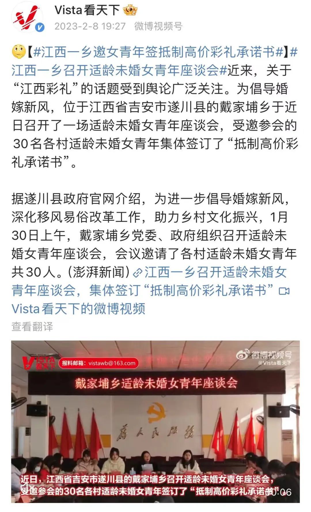 古有贞洁烈女牌坊,今有“零彩礼”、“低彩礼”荣誉榜。