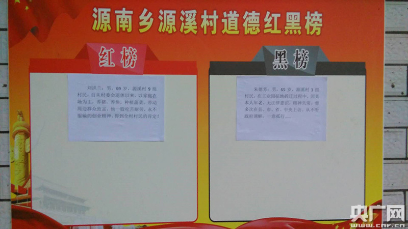 江西萍乡源南乡源溪村的道德红黑榜,来源:央广网