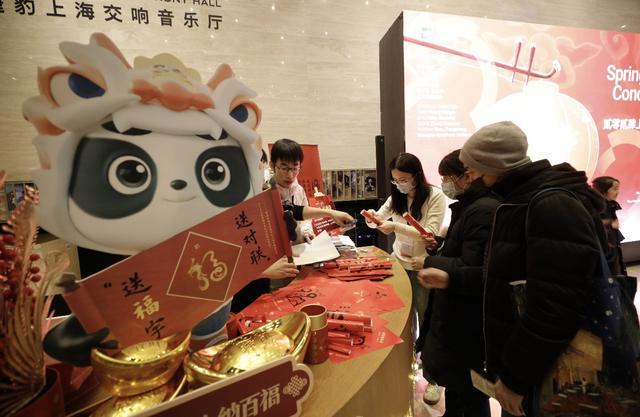 如今,凡事都得有个“氛围感”。走进复兴中路1380号,新春氛围扑面而来。除了音乐厅内“满园春色关不住”的动听音乐,音乐厅外的公共区域也处处奏起独特的“新春交响”——户外长廊张灯结彩,大红灯笼高高悬挂,且内含玄机,内置的有趣灯谜,让观众在灯笼下冥思苦想。走进“馄饨皮”星空大堂更是热闹非凡,不仅有“迎新春,纳百福”的抽奖活动,还有剪纸、捏面人等“非遗”活动现场体验让人流连忘返。