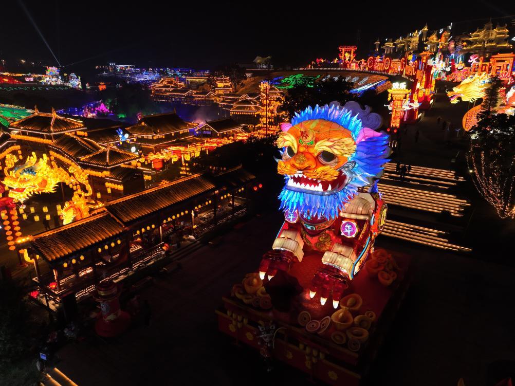 人工智能灯组“年兽贺岁”(无人机照片)。新华社记者沈伯韩 摄