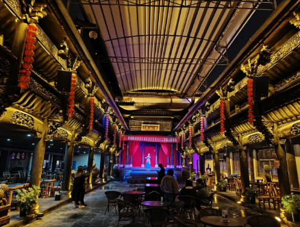 根据现场视频,记者注意到,坍塌事故发生在七十二奇楼景区内名为“瑞雪堂”的“回”字形连廊中间区域,坍塌物疑似为金属顶棚,顶棚下方为观众区,摆放有大量桌椅,从现场坍塌的顶棚上仍可见少量积雪。而从另一段视频可见,不少游客正自行从事故区域撤离。