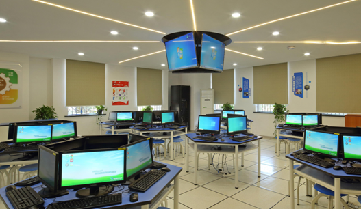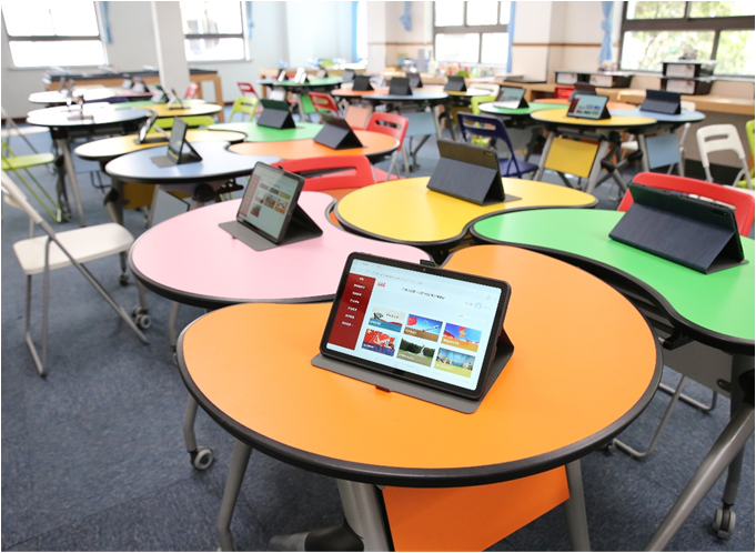 上海市杨浦区打虎山路第一小学以原有的创新实验室为学习空间的建设基础,融合了平板电脑、组合式课桌、仿真试验台等教育装备,创设出布局灵活、高效互动、资源丰富的数字化学习环境。