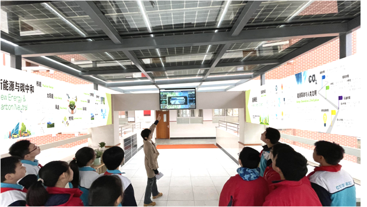 “森·长”空间由2个户外种植基地、1个特色实验室、1条低碳走廊以及分布在各个楼层的6项实验设备构成。基于该学习空间组合,学校可以有效开展涉及理、化、生、地等多学科的学习探究活动,有效促进学生跨学科能力的提高和生态意识的形成。