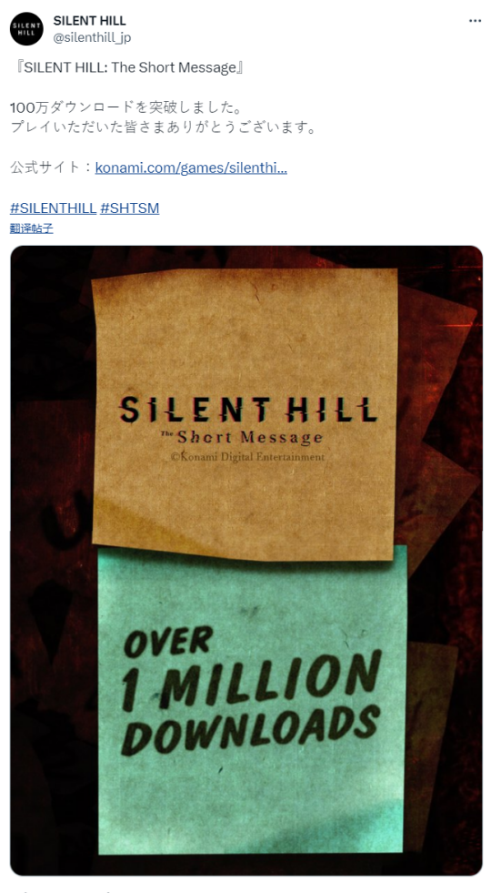 日前,科乐美在推特发文宣布,《寂静岭:短讯(SILENT HILL:The Short Message)》下载量已突破100万,该作于1月31日在PS商店上线,免费下载,支持中文。