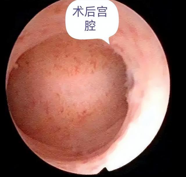 术中所见与术前评估一致。曹女士宫腔形态失常,宫腔中段粘连内聚,右侧宫角肌性粘连。医疗团队胆大心细,在操作空间狭小的宫腔内,精准分离粘连组织,恢复宫腔解剖学形态,整个手术过程顺利。