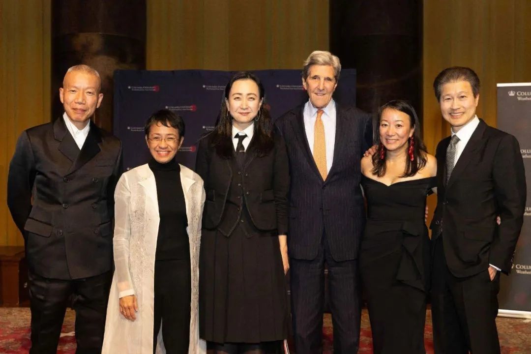 ▲左起:蔡国强、玛丽亚·雷莎、李敏金、约翰·克里、Lien-Hang T. Nguyen与吴建民,2024。纽约哥伦比亚大学提供