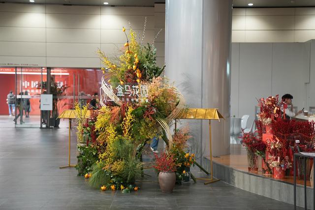 这幅“鲜花画卷”亦是如此,它采用了多种年宵花:小雏菊、澳梅、北美冬青、银柳、雪柳、黄金果等,大部分都是当季的年宵花材,层层叠叠,极富气势。此外,现场还展示了盒马多款年宵花,寓意龙年吉祥,繁花似锦。整个展览将持续到5月,作为新春沪上打卡点,有兴趣的市民,可以近距离去现场感受鲜花与名画的碰撞。
