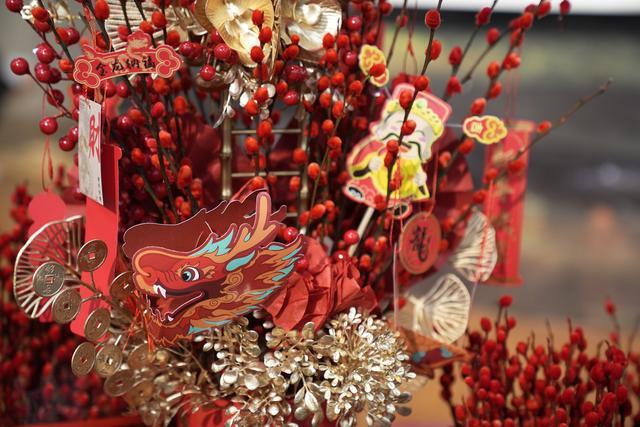 “福桶以红色银柳、红果为主材料,桶身‘神龙盘踞’,再挂上福袋、红灯笼,寓意满满,年味十足。很多来买菜的顾客会随手挑一款带回家。”吕玲林透露,银柳福桶刚上架半个月,已成为鲜花品类的新款销量增长第一名。