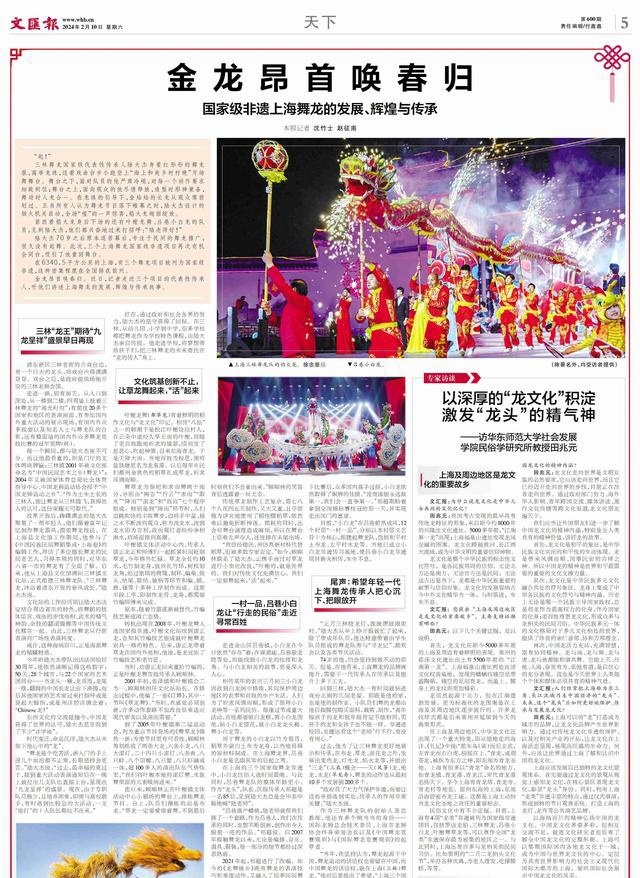 金龙昂首唤春归。近日,记者走近三个项目的代表性传承人,听他们讲述上海舞龙的发展、辉煌与传承故事。