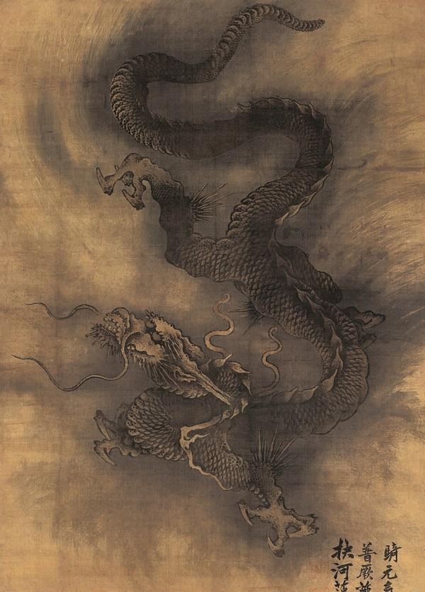 根据历史记载,有许多中国古代画家擅长画龙,更因龙被认为具有行云拨雾的能力而流传出一些颇为传奇的画龙故事。唐代张彦远《历代名画记》载,三国时著名画家曹不兴曾画龙图献给孙皓,陆探微在府中见到此轴,尝试将图放置水上,“应时蓄水成雾,累日滂霈”;因画得逼真而能自行控水布雨,这个传说显示了曹不兴画功的神乎其技。另一位南朝梁画家张僧繇曾于金陵安乐寺画四白龙而不点眼睛,说点上了就会化为真龙飞去。在人们的强烈质疑和要求下,张僧繇点了两条龙的眼睛,“须臾雷电破壁,两龙乘云腾去上天,二龙未点眼者见在。”这正是成语“画龙点睛”的由来。可惜这些画家均没有作品传世,我们只能在另一些作品中感受古人对龙之灵异的把握:在著名的《洛神赋图》中,洛神最终乘坐云车,在文鱼水灵的护卫下离去,车前“六龙俨其齐首”,车后另有两条游龙随驾,好不气派。龙张牙舞爪地向前飞驰,印证着它“嘘气成云”的本领,并与车上洛神的回首不舍形成鲜明对比。到了宋代,开始出现专以画龙见长的画家,如董羽、王显道、吴怀、陈容、僧法常等等,其中以陈容尤为著名。传说其“画龙善用水墨,深得变化之意,泼墨成云,噀水成雾”(《图绘宝鉴》),尤其喜欢喝醉后一边大声呼喝,一边以头巾濡墨信手涂抹,并能深得龙之神韵。海内外多家博物馆、美术馆藏有传为陈容的龙图,其中波士顿美术馆的《九龙图》长卷尤为著名:画面中九条神态各异的龙由云雾、湍流、激瀑、漩涡间隔而各盘踞一方天地,显得神气宛然,墨色淋漓;画家于片纸之上营造出龙于涧渊深谷、波涛云雾之中的灵动神异,被许多人认为是现存古代绘画中对龙的最佳表现。