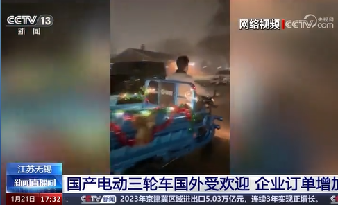 央视新闻报道,除了新近热起来的美国三轮车定制市场内,无锡每年生产的两轮、三轮电动车总量中,有两到四成会走出国门,遍及70个国家和地区。
