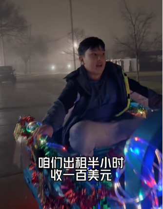 圣诞节圣诞老人不骑雪橇,不开轿车,只要一辆“蹦蹦”,再配上最大声的音乐,让所有人听见。
