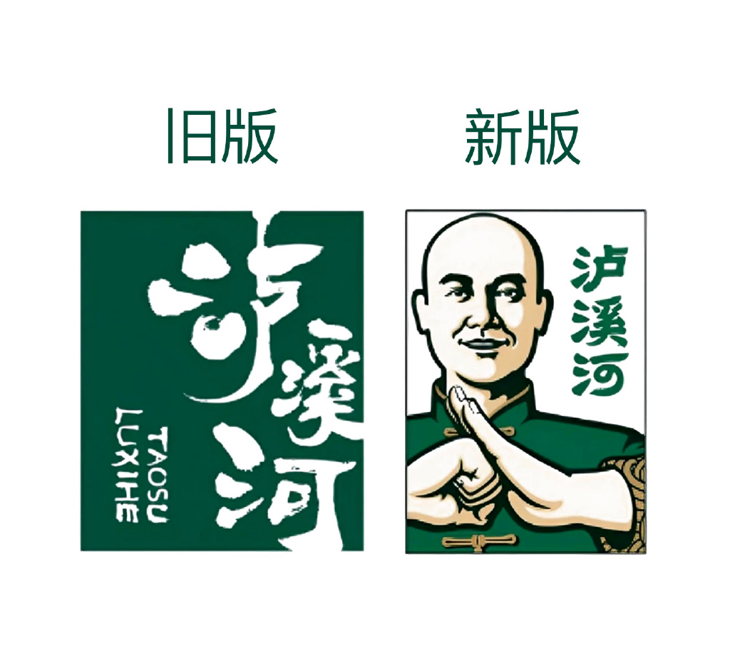 还有华与华为泸溪河品牌设计的新LOGO,LOGO由创始人行抱拳礼形象和品牌名相结合,并被命名为“大掌柜”,而书法笔画的中式字体也变为更规整的字体。