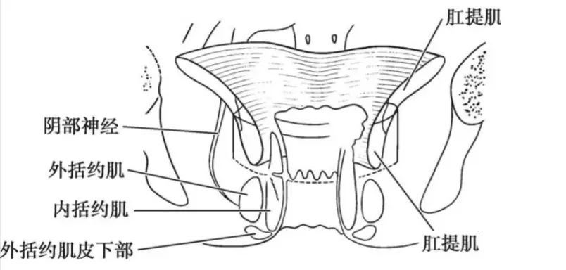 组织学证实,肛周褶皱位于外括约肌表面,其皮下组织与内括约肌相连,且混有内括约肌纤维、联合纵肌纤维、横纹肌纤维、平滑肌纤维。