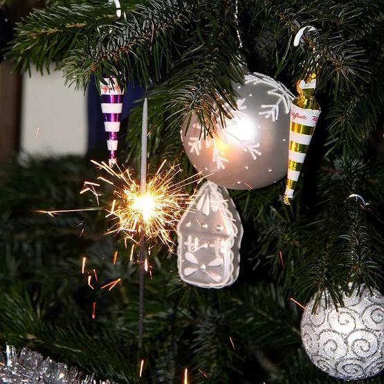 挂在圣诞树上燃烧的仙女棒丨wikimedia commons/Steindy
