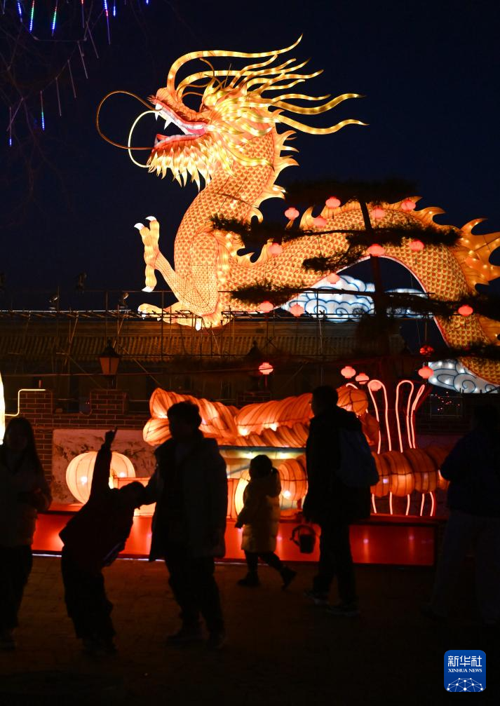2月12日,游客在河南三门峡陕州地坑院龙年灯会上参观游园。