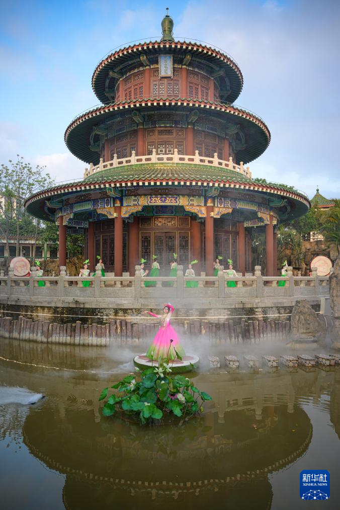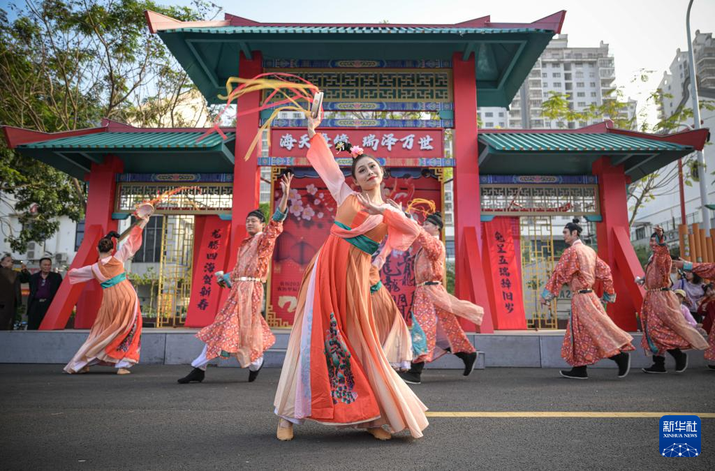 2月12日,在位于海南省海口市的第十六届万春会分会场——海瑞文化公园春节系列活动中拍摄的舞蹈演艺现场。