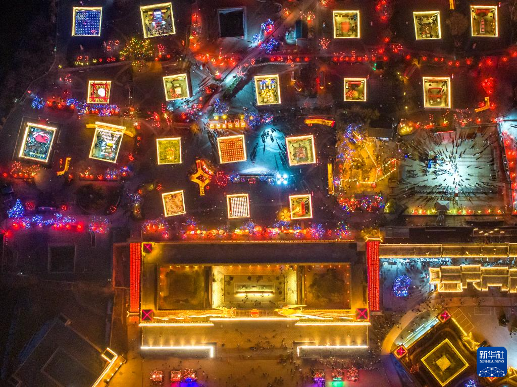 2月12日拍摄的河南三门峡陕州地坑院龙年灯会(无人机照片)。