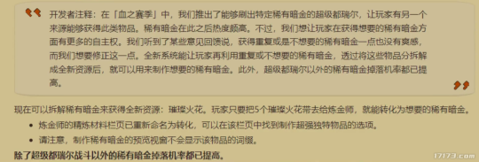1.3.2补丁可以让我们分解稀有暗金获取璀璨火花,然后用5个璀璨火花兑换一件稀有暗金,出于对暴雪设计师的信任我大胆猜测,分解稀有暗金给的璀璨火花应该和分解传奇装备给遗忘之魂的数量一样,也就是双手剑祖父、双手杖祭坛矛拆了给两个,剩下的稀有暗金统统只给一个火花。