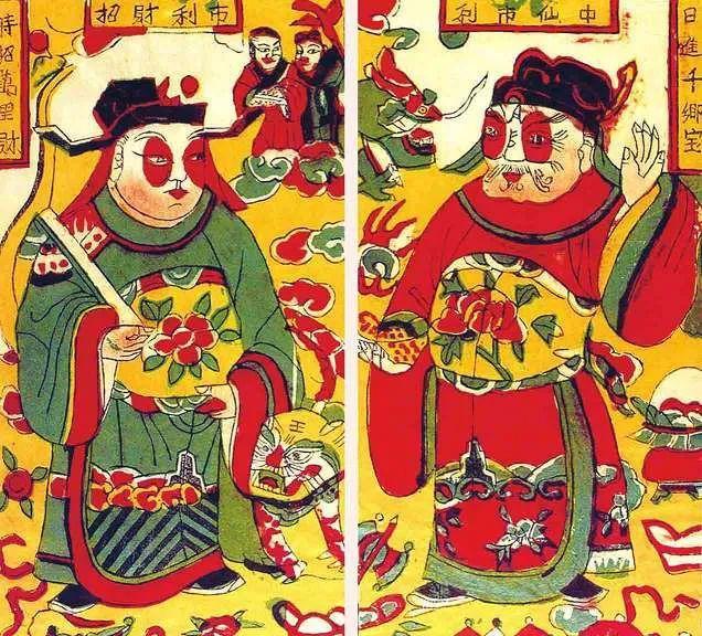 “仙官”一词出自道教典籍,它的原意是教阶制度下有官职的神仙,后来特指超教派的利市财神。利市仙官是民间流传的一位小财神,利市意为“走运,吉利”,所以利市仙官最受商人欢迎。每逢新年,大大小小的商户就将利市仙官贴在门上,以求生意越来越红火,财源越聚越多。