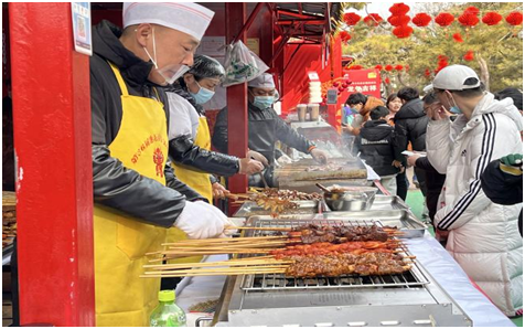 庙会还为游客们提供了一个难得的购物天堂,游客们可以在各个摊位上找到各种各样的商品,包括传统的手工艺品、民俗纪念品等。无论是追求传统文化的藏家,还是喜欢收集特色纪念品的年轻人,都可以在庙会上找到心仪之物。这些物品既具有收藏价值,又能带给人们独特的体验感。除了这些,庙会上各类饕餮美食,香气四溢。从引人入胜的传统庙会小吃到各地特色美食,让游客在品味美味的同时,也感受到浓厚的地方文化氛围。