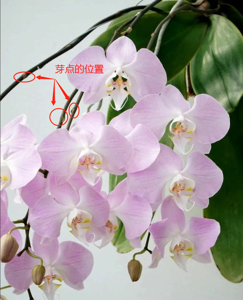 我们在花梗的生长节点上,就可以看到一些小鼓包,那就是它们的芽点。只要给足养分,有较多光照,以及维持较高的湿度,这些芽点是可以冒出一根花梗的。