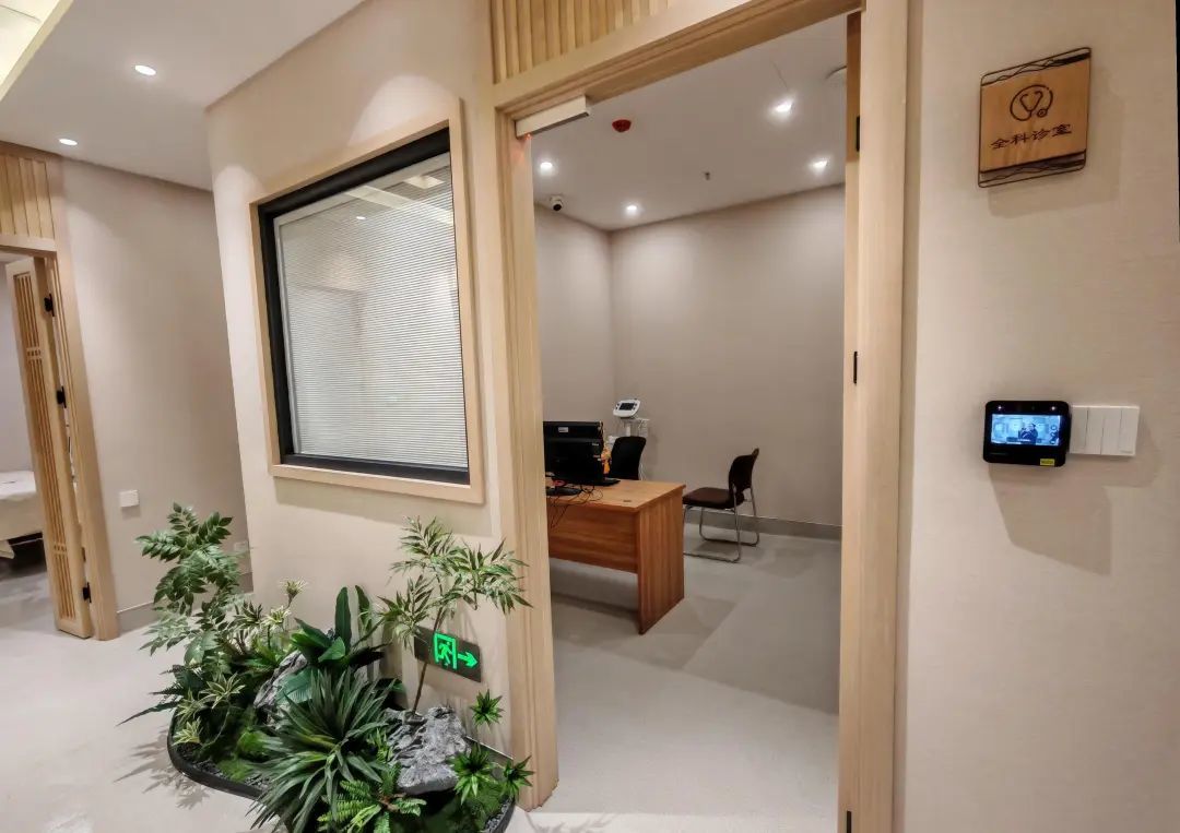 走进站点,中式木质装修风格配以暖黄的灯光,营造了温馨的就医环境,让患者能够放松下来。整个站点约308㎡,将中医元素融入设计装饰,设有全科诊室、中医全科诊室、中医康复治疗等,未来将主打“品智中医”。站点将配备一支由中医全科副主任医师、中医全科主治医师以及主管护师、康复技师、药剂师组成的团队,且均为党员或入党积极分子,提供包括中医全科医疗、中医康复治疗、中医“治未病”、家庭医生签约、家庭病床、老年人健康管理等在内的服务。
