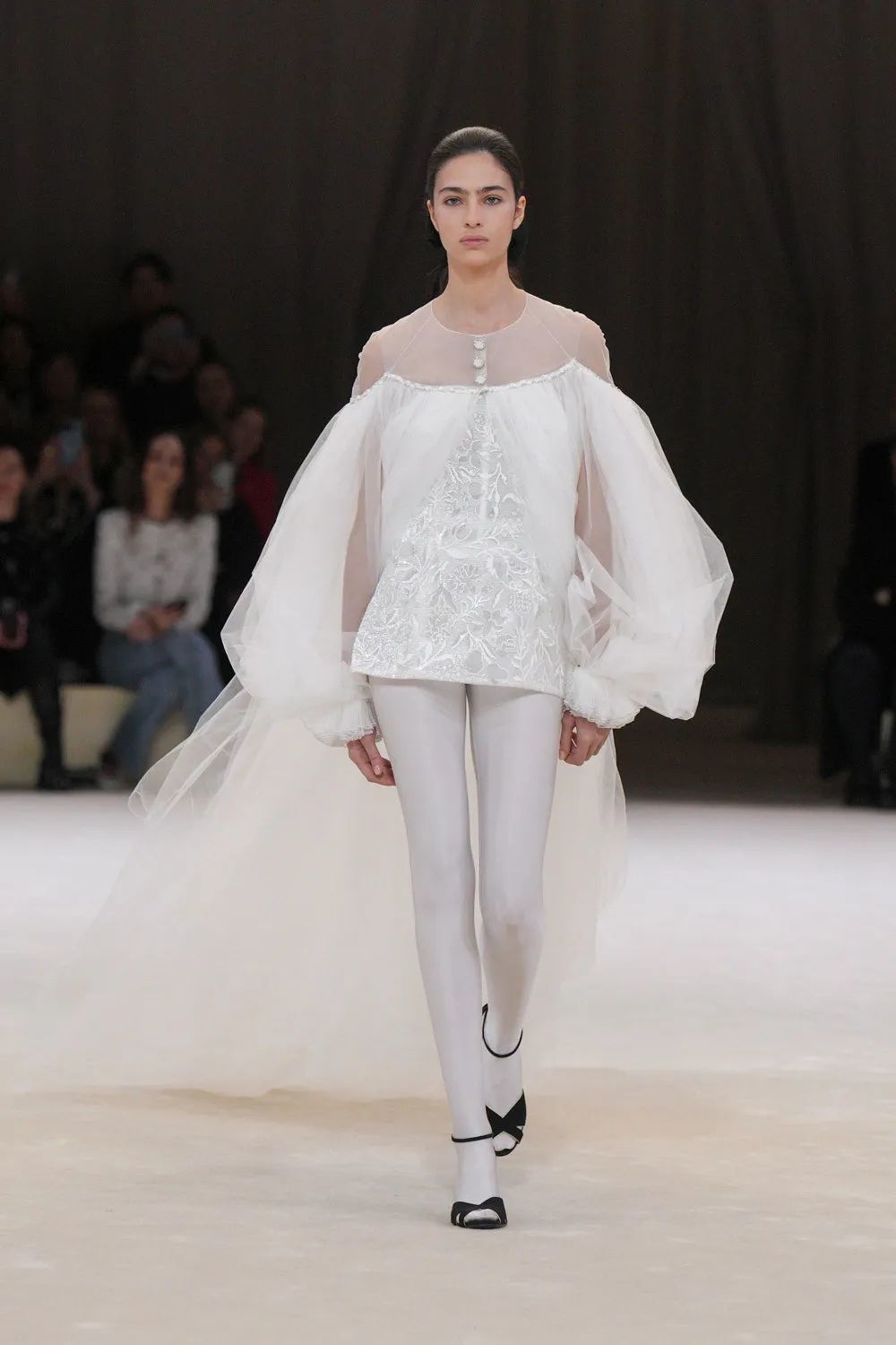 本季度是 Loli Bahia 出道四年后的大爆发,今年1月,Loli 在香奈儿 CHANEL 2024春夏高级定制系列上作为压轴女模特登场,她以一袭白纱的“高定新娘”形象惊艳亮相,展现了其独特的魅力和不凡的气质。这一传统在香奈儿的高级定制秀中由来已久,每一场高定秀,创意总监都会挑选一位最能代表 CHANEL 精神的模特作为闭场新娘。而本季,这份荣耀降临在了 Loli Bahia 的身上。