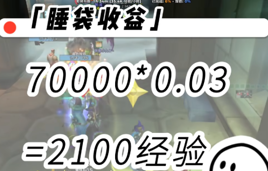目前大多数玩家30级之后就泡在血色修道院打本升级,根据玩家计算35级左右的玩家组AA队刷2个小时血色修道院大约可获得7万经验,睡袋BUFF提供的3%经验加成收益为2100点经验。看起来也不少是吧,但要计算净收益还要刨除3分钟没打怪损失的1750点经验(按2小时7万经验计算),这样算来2小时的经验睡袋BUFF真实净收益只有350点经验,也就相当于是多打了3个小怪。