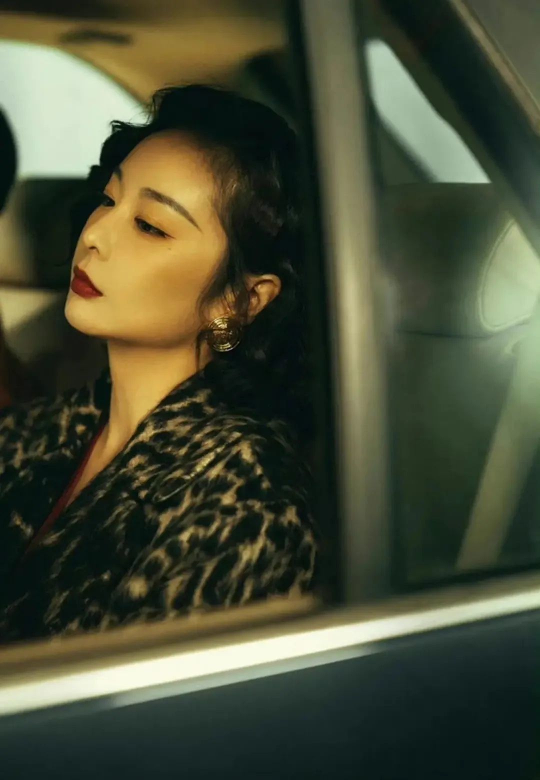 她一头卷发,红唇,港风套装,美得明艳动人。