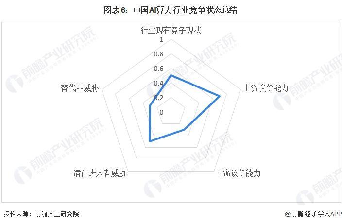 根据以上分析,对各方面的竞争情况进行量化,1 代表最大,0 代表最小,目前我国 AI 算力行业五力竞争总结如下: