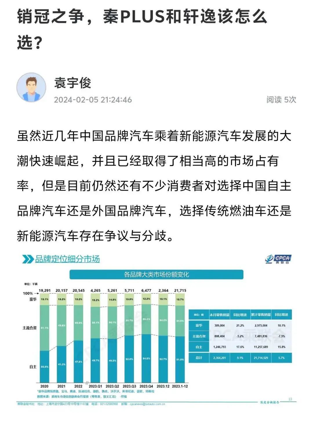 前两天,教授说中国品牌新能源汽车与外国品牌传统燃油车之间竞争激烈,并且对比了以比亚迪秦PLUS DM-i为代表的中国品牌新能源汽车,和以日产轩逸为代表的外国品牌传统燃油车各有哪些优缺点。