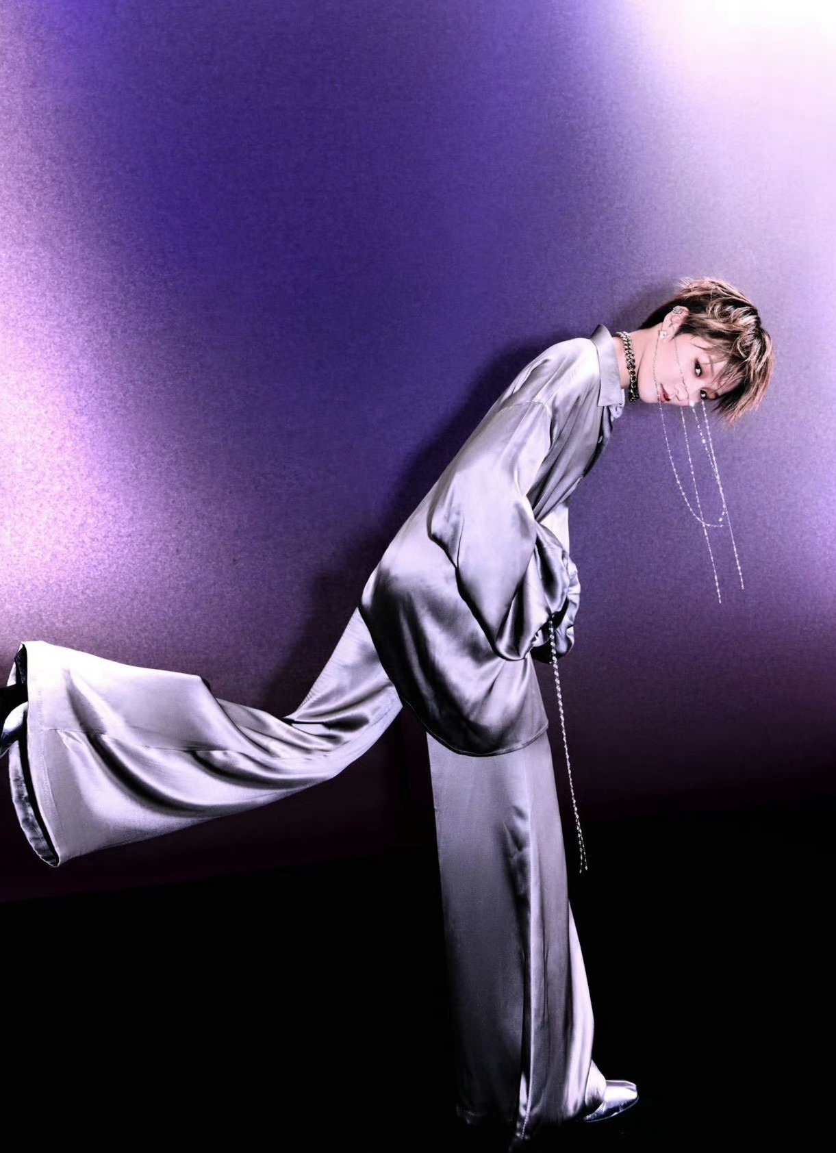 刘雨昕缎面套装展现潇洒个性