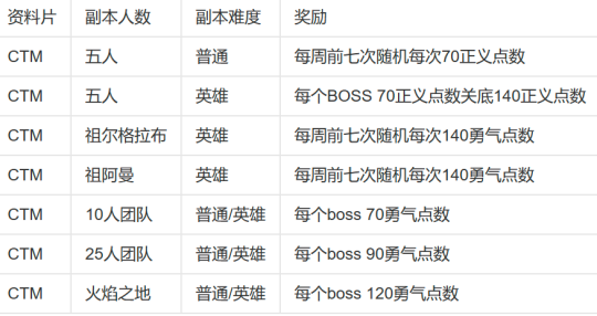 正义/勇气点数的定位类似于巫妖王之怒怀旧服P1阶段的英雄/勇气纹章,可以兑换高低两档的PVE装备,不同的是勇气点数有每周获取上限(每个阶段的周上限略有不同),玩家不必强迫自己每天上线打一个5H,可以一口气连打7个5H刷满上限,25人团本全通后更是可以不打5H。另一个好处在于阶段更新时,还是以巫妖王之怒怀旧服为例,玩家P1阶段打5H攒的英雄纹章到了P2阶段仍然只能换200等级牌子装,而大地的裂变开放新团本后勇气点数纹章将按照1比1的比例全部转化为正义点数与原有正义点数叠加,勇气点数兑换装备更新,原来的勇气点数兑换装备降级为正义点数兑换装备,这就相当于玩家之前打5H攒下的正义点数“免费升级”了。这项改动广受玩家的好评,因而在后续的几个资料片中也都得以保留。