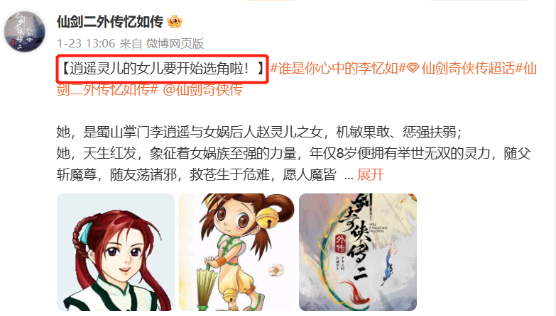 我定睛一看,发现这次要改编的是《仙剑二》。