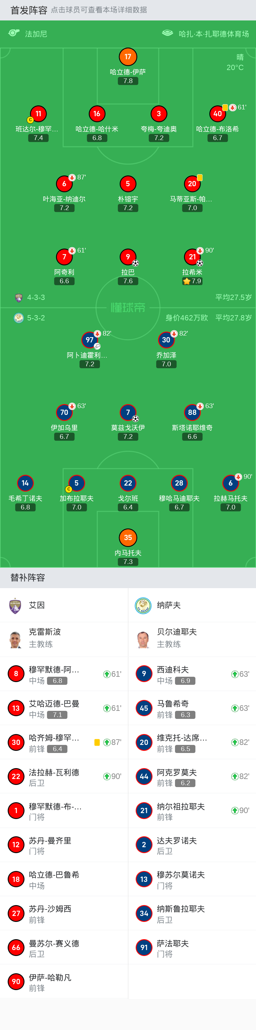 替换下场:61'7-阿奇利, 90'+721-拉希米, 87'6-叶海亚-纳迪尔, 61'40-哈立德-布洛希