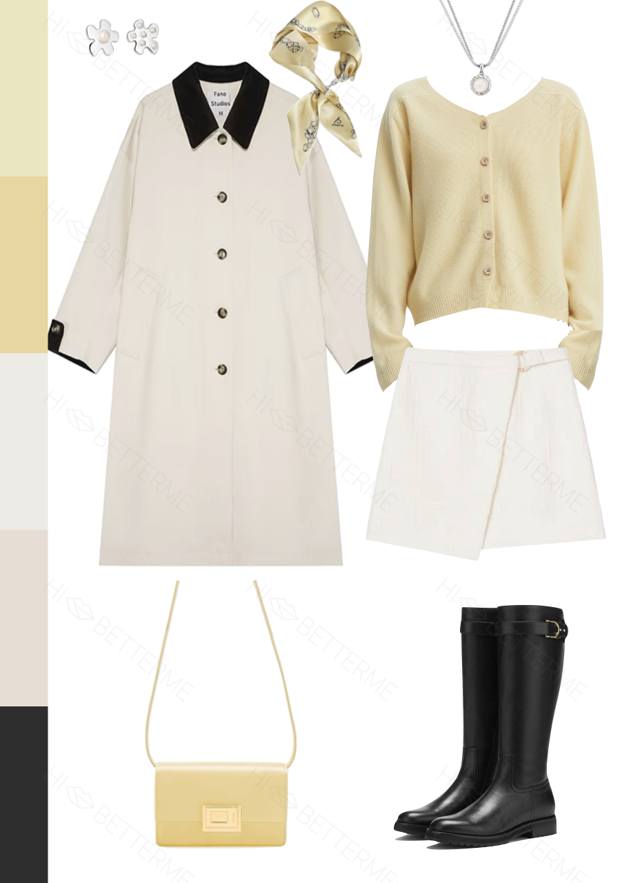 最后点缀淡黄色丝巾和甜美精致首饰,温柔可爱气质拉满,工作上不小心犯了错都没人舍得怪你!(不是