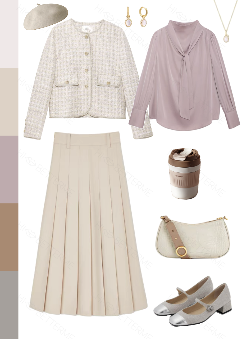 上衣我选了精致贵气的小香风外套内搭丝质系带衬衫,一整个迷人住了!