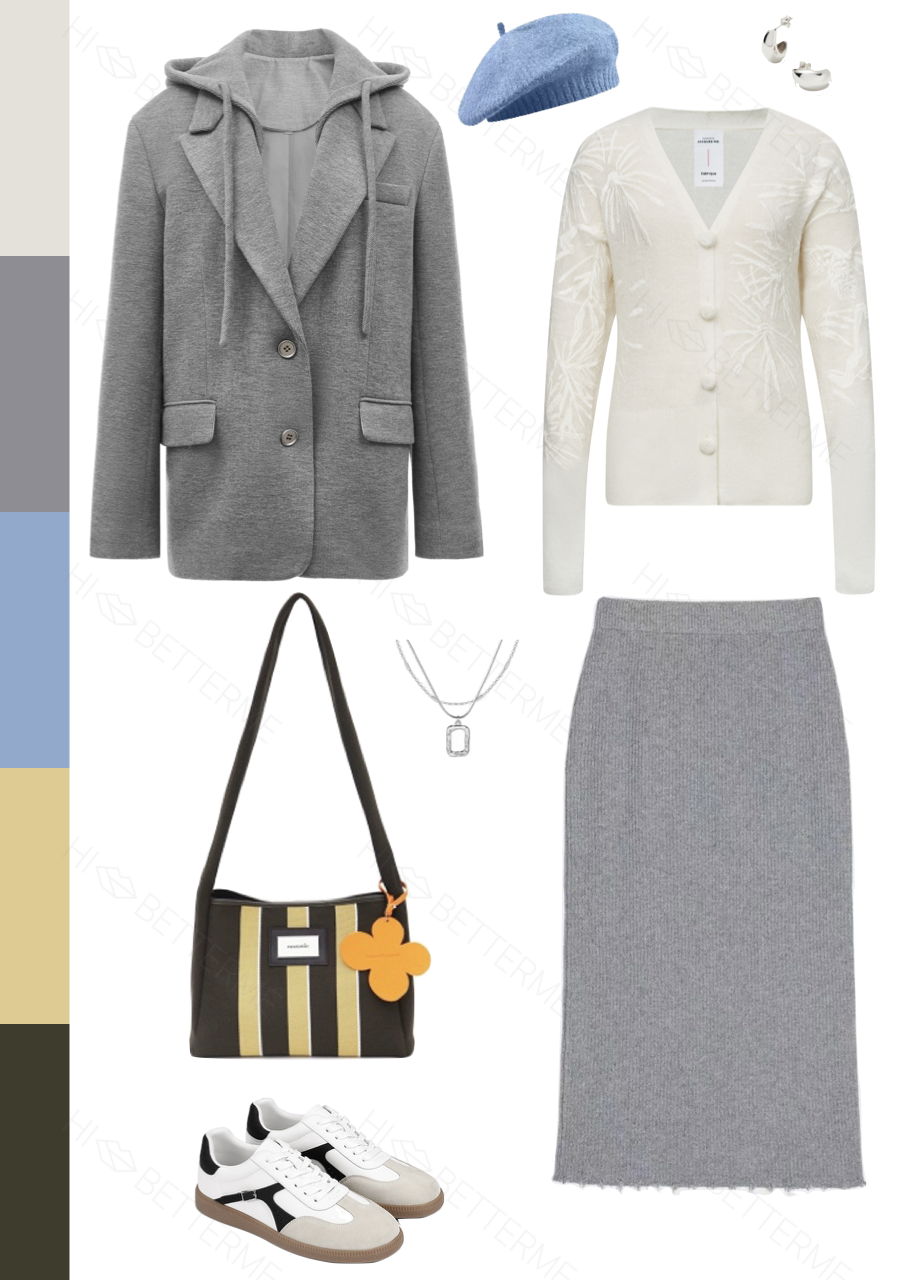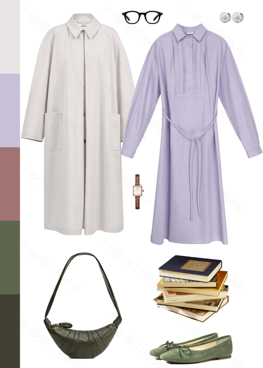 下面这套很有清冷知识分子感,特别适合量感中偏大的施主参考。