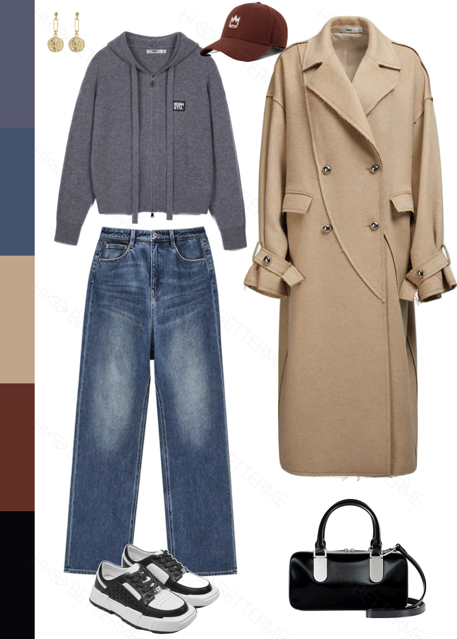 我选了一件干净简约的插肩袖风衣,挺括利落,看起很有气场。
