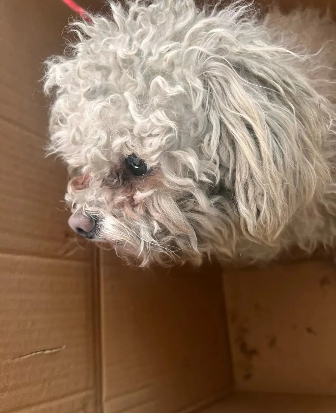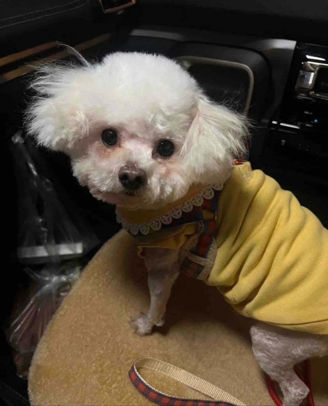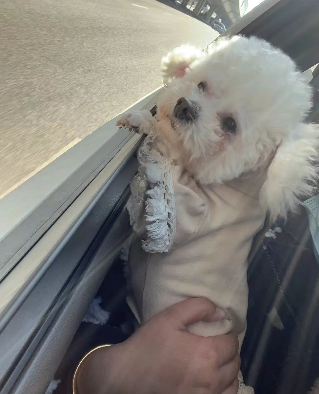 狗狗看着应该是只比熊,之前肯定是有主人的,不知是被遗弃还是走丢了,但看模样就知道受了很多苦,这也让网友更心疼了。