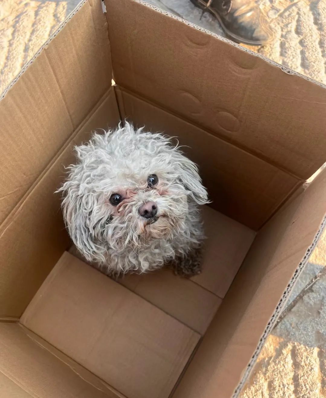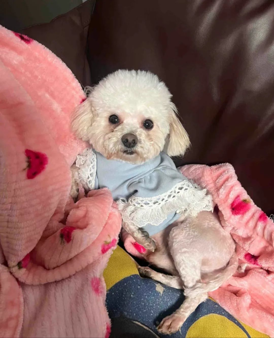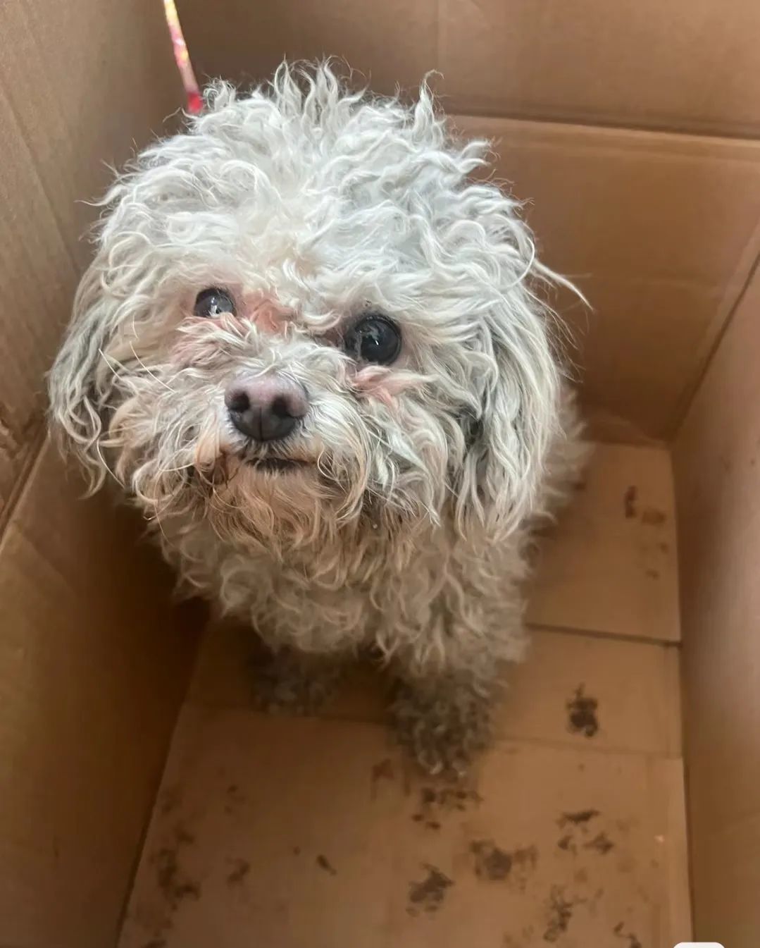狗狗看着应该是只比熊,之前肯定是有主人的,不知是被遗弃还是走丢了,但看模样就知道受了很多苦,这也让网友更心疼了。