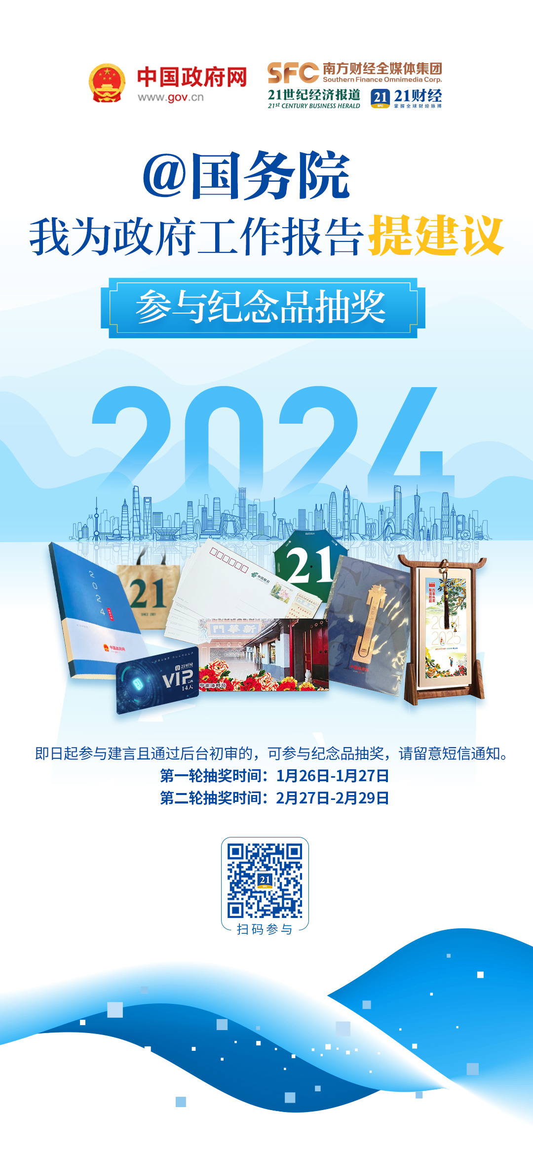 为感谢与鼓励积极参与建言的用户,21世纪经济报道、21财经客户端特别准备了一批精美的纪念品。参与建言且建言通过后台初审的用户,可参与纪念品抽奖。